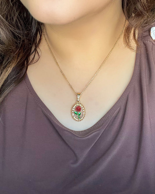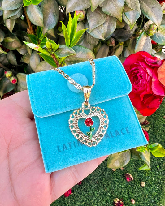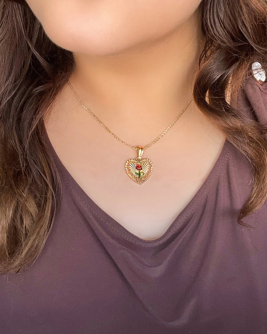 Rosa en Corazones Necklace